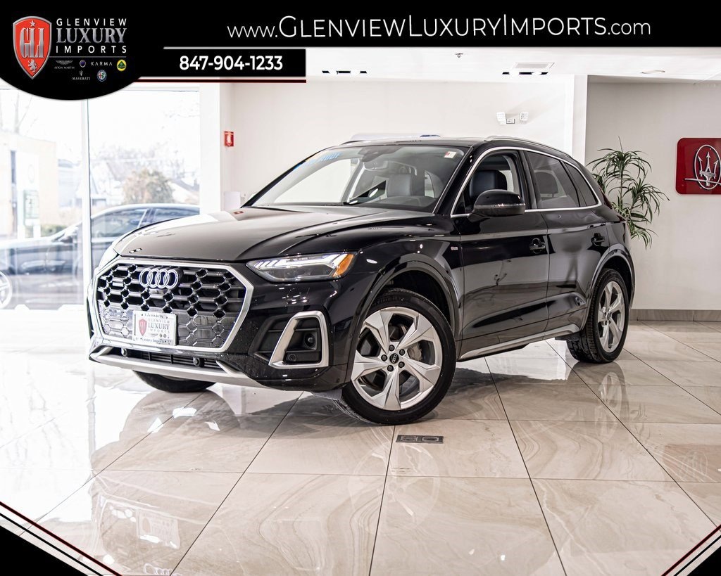 2023 Audi Q5 45 S line Prestige quattro quattro 2.0L Turbocharged Mythos Black Metallic One Owner, Clean CARFAX, AWD, Navigation, Sunroof, Leather Seats, Heated Seats, Backup Camera, Memory Seats, Premium Sound System, Black w/Leather Seating Surfaces, Audi Active Lane Assist, Audi Advanced Key, Audi Connect PLUS, Audi Phone Box, Audi Virtual Cockpit Plus, Auto-Dimming Power Folding Exterior Mirrors, Bang & Olufsen Sound System w/3D Sound, Convenience Package, Driver Seat Memory, Dual Pane Acoustic Glass for Front Side Windows, Hands-On Detection Steering Wheel, Head-Up Display, Heated & Cooled Front Cup Holder, Heated Rear Seats, Heated Steering Wheel, Leatherette Covered Center Console & Door Armrests, LED Interior Lighting Plus Package, Manual Rear Side Window Sunshades, Matrix-Design LED Headlights w/Headlight Washers, MMI Navigation Plus, Navigation Package, Navigation System, Panoramic Sunroof, Park Assist, Power Adjustable Steering Column, Prestige Package, SiriusXM w/360L, Top View Camera System, Traffic Jam Assist, Traffic Sign Recognition, Ventilated Front Sport Seats w/4-Way Power Lumbar, Warm Weather Package, Wheels: 19" 5-Double-Arm Design Bi-Color Finish. 22/29 City/Highway MPG