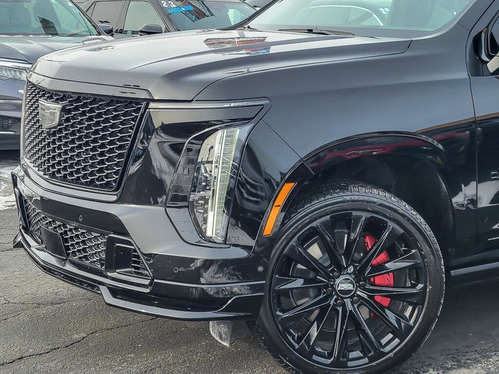 11/17 City/Highway MPG **With some available options like Onyx Package (24" Black Alloy Wheels, Black Illuminated Cadillac Emblem, Gloss Black Escalade Nameplate, and Wheels: 24" Transit), Preferred Equipment Group 1SD (Active Noise Cancellation, AKG Studio Reference 38-Speaker Audio System, Blind Zone Steering Assist with Trailering, Door Lock and Latch Shields, Driver Seat Power Bolster, Electronic Limited-Slip Differential, Front Passenger Seat Power Bolster, Glass Breakage Sensor, Heated and Ventilated Driver and Front Passenger Seats, Hitch Guidance with Hitch View, Illuminating Front and Rear Sill Plates, Integrated Trailer Brake Controller, Magnetic Ride Control Suspension, Night Vision, Platinum Interior Trim, Power Lumbar Massage Driver Seat, Power Lumbar Massage Front Passenger Seat, Power Panoramic Tilt-Sliding Sunroof, Power-Retractable Assist Steps, Rear Seat Entertainment System, Reconfigurable Full-Color Head-Up Display, Smart Trailer Integration Indicator, Theft-Deterrent Alarm System, Trailering App, Trailering Assist Guidelines, Vehicle Inclination Sensor, Vehicle Interior Movement Sensor, Wheel Locks, and Wheels: 24" Split 6-Spoke Alloy), Touring Package (Air Ride Adaptive Suspension, Power Open/Close Doors, and Soft Closing Front and Rear Doors), Ford Blue Advantage: Blue Certified Certified, AWD, Jet Black w/Full Semi-Aniline Leather Seats with Mondrian Quilting, 2-Presets Memory For Driver Seat Adjuster, 3.23 Axle Ratio, 3rd row seats: split-bench, 4-Way Power Driver Lumbar Seat Adjuster, 4-Way Power Front Passenger Lumbar Seat Adjuster, 4-Wheel Disc Brakes, 8-Way Power Driver Seat Adjuster, 8-Way Power Front Passenger Seat Adjuster, ABS brakes, Adaptive suspension, Air Conditioning, Alloy wheels, AM/FM radio: SiriusXM with 360L, Apple CarPlay/Android Auto, Audio memory, Auto High-beam Headlights, Auto tilt-away steering wheel, Auto-dimming door mirrors, Auto-dimming Rear-View mirror, Automatic temperature control, Brake assist, Bumpers: body-color, Compass, Delay-off headlights, Driver door bin, Driver vanity mirror, Dual front impact airbags, Dual front side impact airbags, Electronic Stability Control, Emergency communication system: OnStar Services capable, Exterior Parking Camera Rear, Four wheel independent suspension, Front anti-roll bar, Front Bucket Seats, Front Center Armrest w/Storage, Front dual zone A/C, Front reading lights, Full Semi-Aniline Leather Seats with Mondrian Quilting, Fully automatic headlights, Garage door transmitter, Genuine wood console insert, Genuine wood dashboard insert, Genuine wood door panel insert, Headphones, Heads-Up Display, Heated door mirrors, Heated Driver and Front Passenger Seats, Heated front seats, Heated rear seats, Heated steering wheel, Illuminated entry, Knee airbag, Lane Departure Warning System, Leather steering wheel, Low tire pressure warning, Memory seat, Navigation System, Night vision lights, Occupant sensing airbag, Outside temperature display, Overhead airbag, Overhead console, Panic alarm, Passenger door bin, Passenger vanity mirror, Power door mirrors, Power driver seat, Power Liftgate, Power moonroof, Power passenger seat, Power steering, Power windows, Radio data system, Radio: Infotainment Experience, Rain sensing wipers, Rear air conditioning, Rear anti-roll bar, Rear audio controls, Rear reading lights, Rear window defroster, Rear window wiper, Remote keyless entry, Security system, SiriusXM with 360L Trial Subscription, Speed control, Split folding rear seat, Spoiler, Steering wheel memory, Steering wheel mounted audio controls, Tachometer, Telescoping steering wheel, Tilt steering wheel, Traction control, Trip computer, Turn signal indicator mirrors, Variably intermittent wipers, Ventilated front seats, Voltmeter, and Wireless Apple CarPlay/Wireless Android Auto **