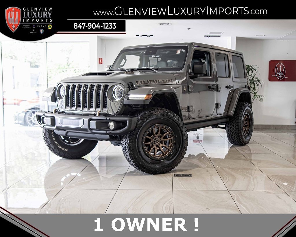 2023 Jeep Wrangler Rubicon 392 4WD SRT HEMI 6.4L V8 MDS Sting-Gray Clearcoat One Owner, Clean CARFAX, AWD, Navigation, Leather Seats, Heated Seats, Backup Camera, Premium Sound System, Premium Audio, Multi-Zone Climate Control, Bluetooth, Hands-Free, USB Port, 7 & 4 Pin Wiring Harness, Class II Receiver Hitch, Convertible HardTop, Quick Order Package 27X Rubicon 392, Rubicon 392 Suspension, Trailer Tow Package, Wheels: 17" x 7.5" Beadlock Capable.